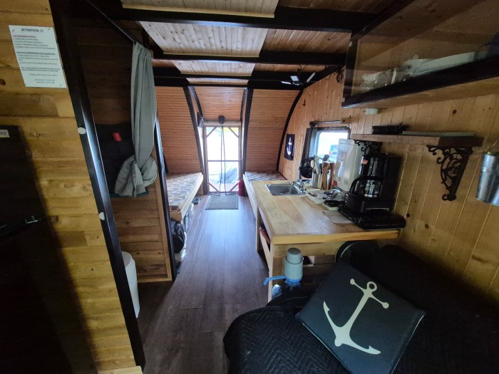 Avec un système solaire pour alimenter les lumières et le frigo, vous profiterez d’une expérience écologique et autonome.