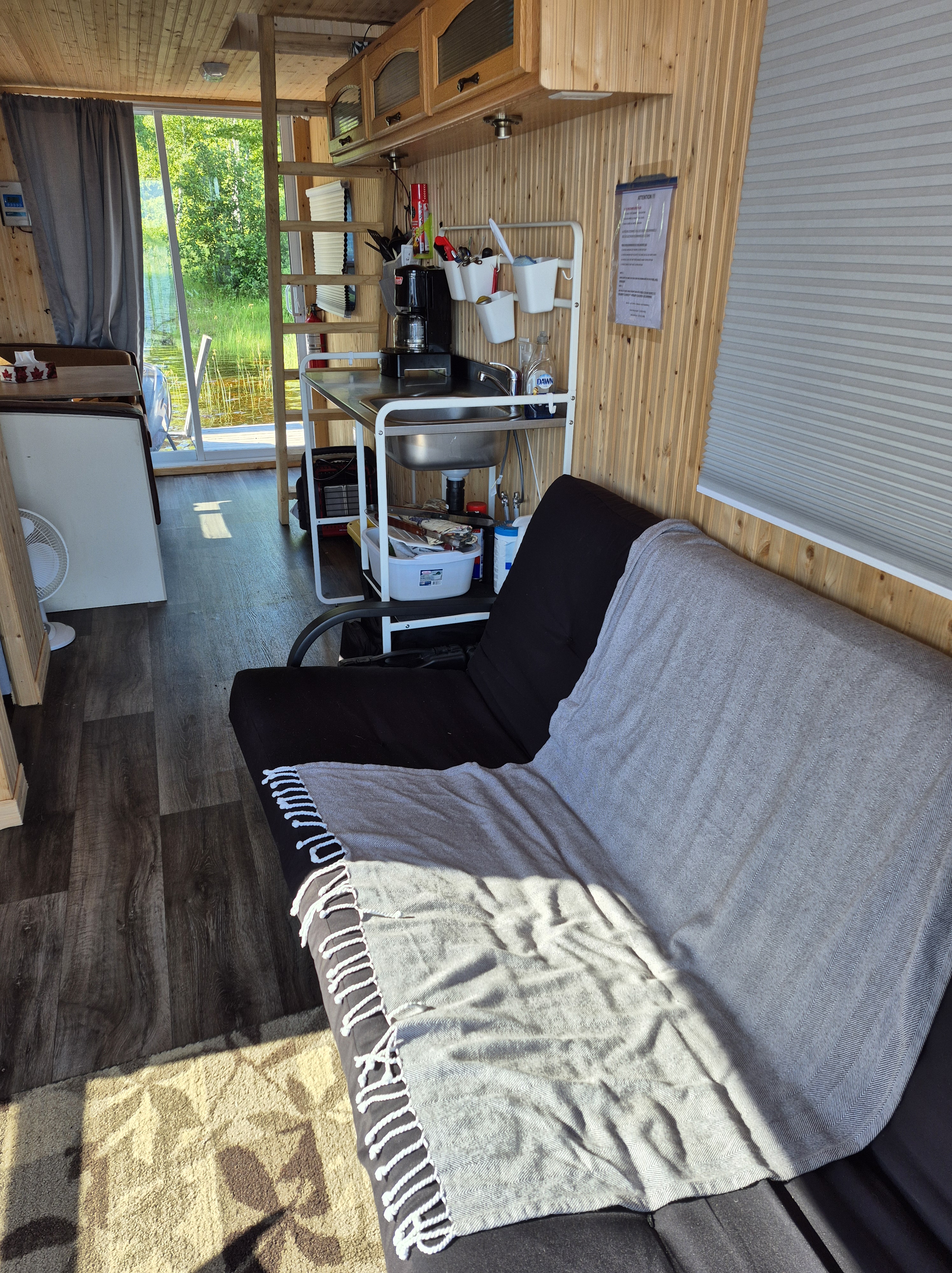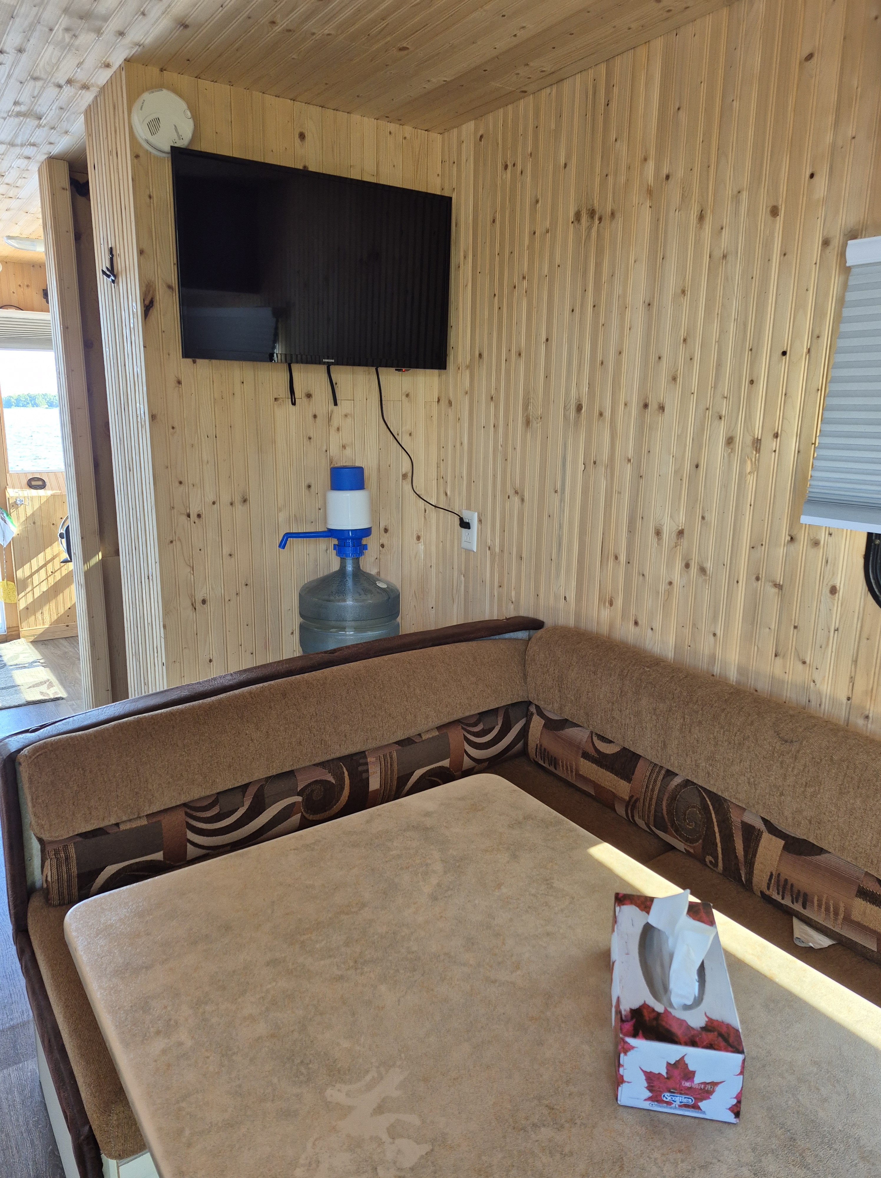 Le bateau-maison 02 est l’option parfaite pour une escapade relaxante et immersive sur le réservoir Baskatong. Offrant tout le confort moderne au cœur de la nature, ce bateau-maison vous permet de profiter des vastes paysages, des eaux paisibles, et de la tranquillité que seul le Baskatong peut offrir. Que ce soit pour des vacances en famille, en couple ou entre amis, ce bateau-maison offre une expérience unique. Capacité d’accueil de 6 adultes et 2 enfants.